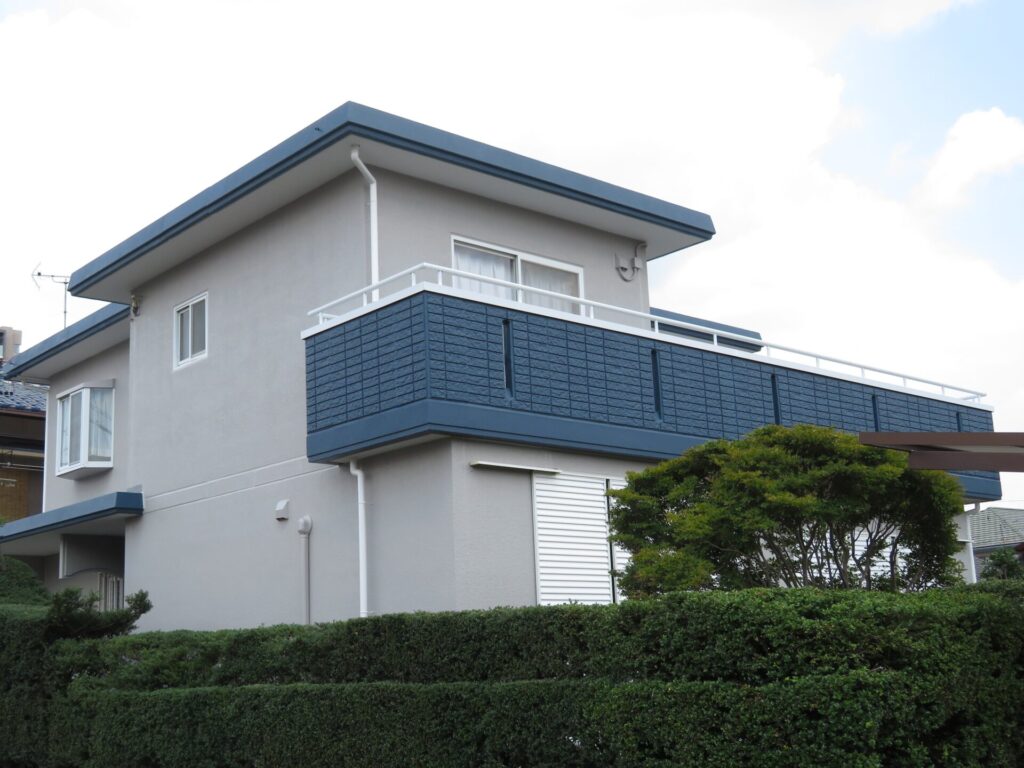 外壁と一緒に屋根も塗装するなら、青い外壁には黒やグレーの屋根がおすすめです。