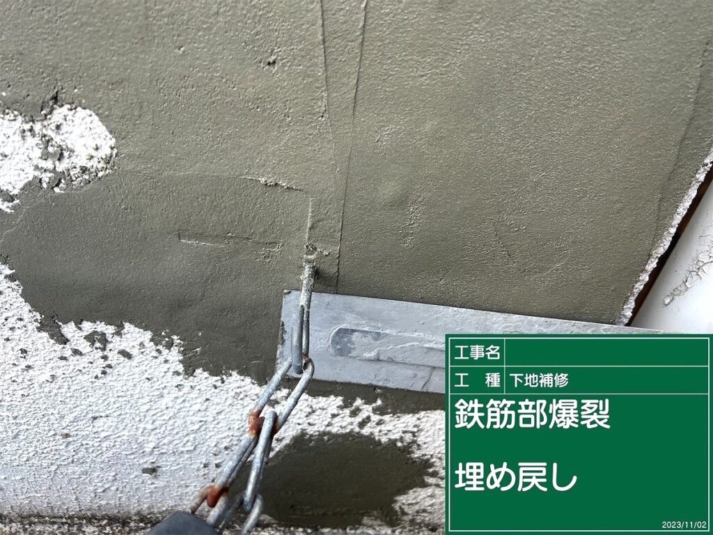 プライマー塗布後、モルタル等で欠けた部分を埋め、平らにならします。