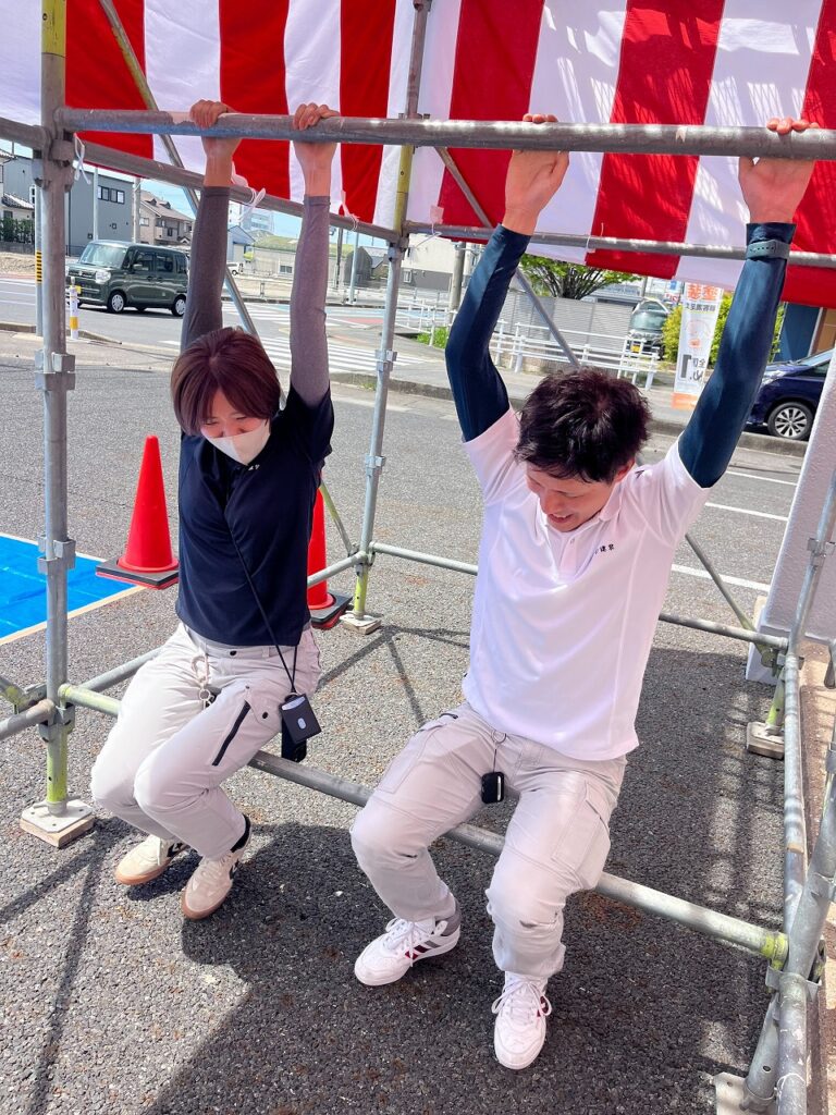 イベント恒例?スタッフのオフショット。今回は懸垂対決のようです笑
