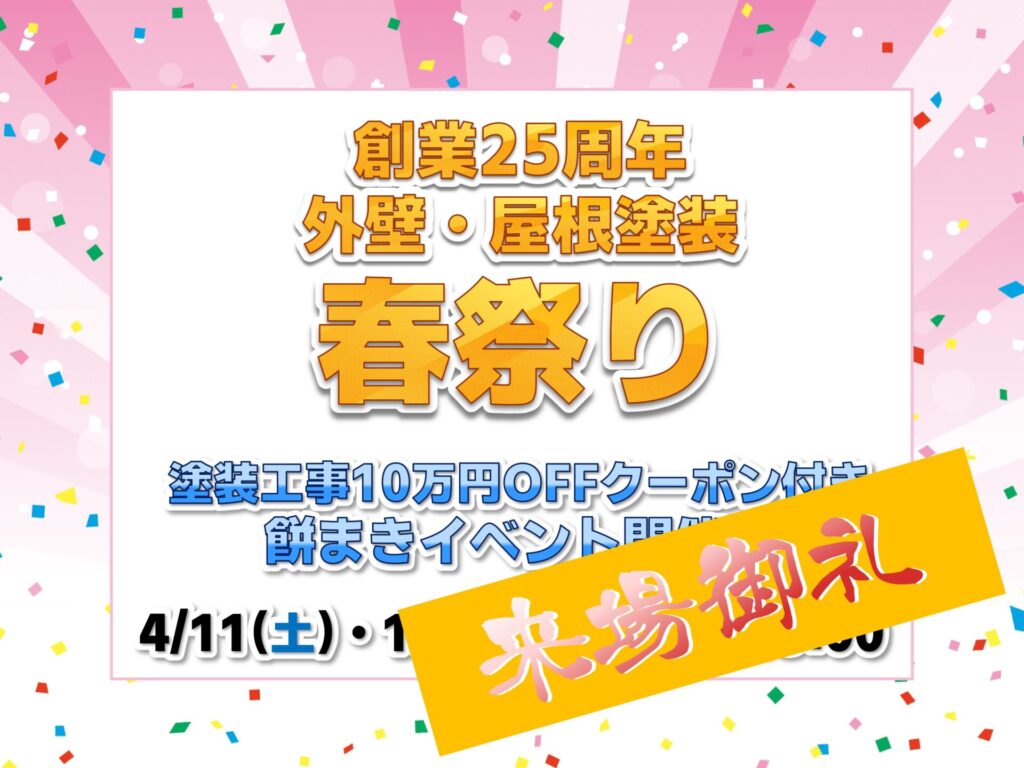 プロタイムズ北名古屋店ショールームにて、4/11(土)・4/12(日)の2日間、外壁塗装の無料相談会イベント「創業25周年 外壁・屋根塗装春祭り」を開催しました。