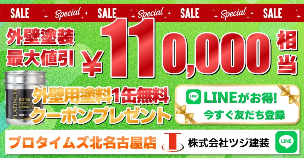 プロタイムズ北名古屋店のLINE公式アカウントでは、創業25年の感謝を込めて、お得な外壁塗装クーポンを配布中です!