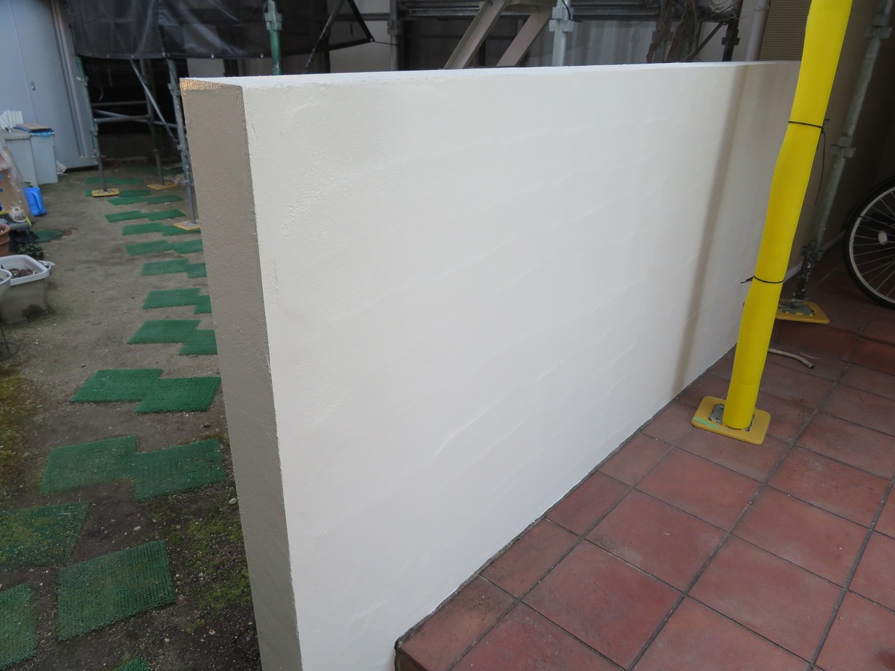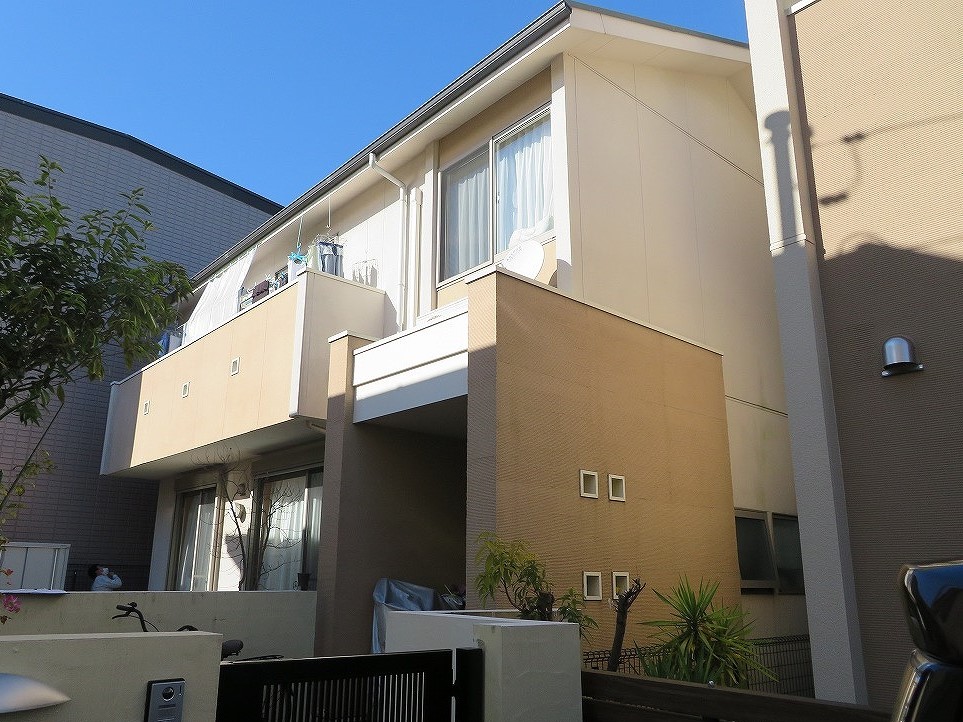 シリコン塗料にて施工し、元の色に近いホワイト×ベージュの組み合わせで仕上げています。