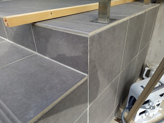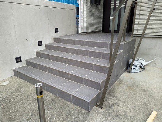中川区のお住まいにて、玄関・ポーチ部分のタイルの張替え工事を行いました。