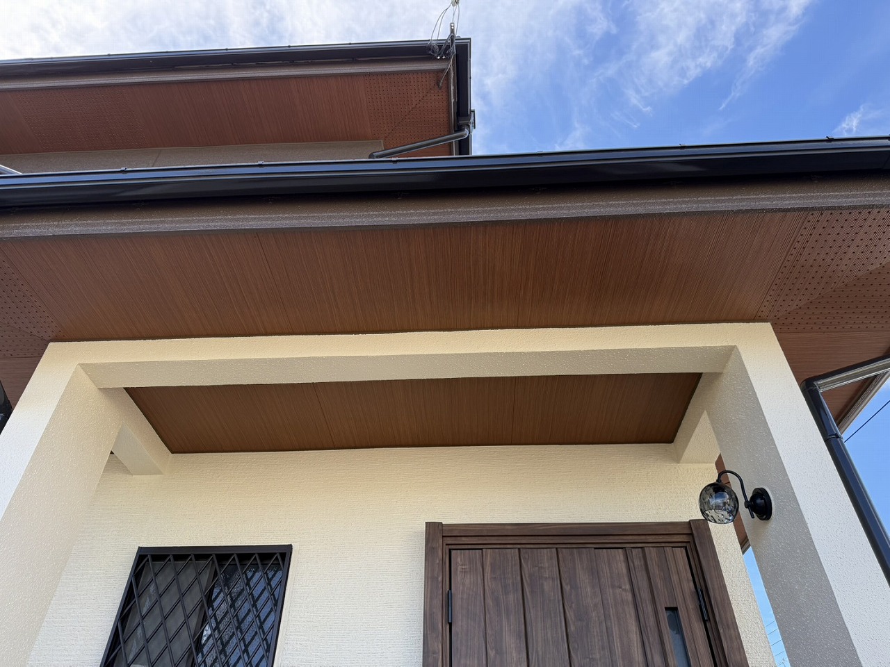 ベランダ部分の壁に水が入り込み、浮きや捲れが目立っていたため張替えをし、木材が古くなって傷んでいたウッドデッキも新調しました。軒天を木目調に張替え、外壁は上下で分けてツートンカラーに塗り替えて、がらりとイメージチェンジしています。