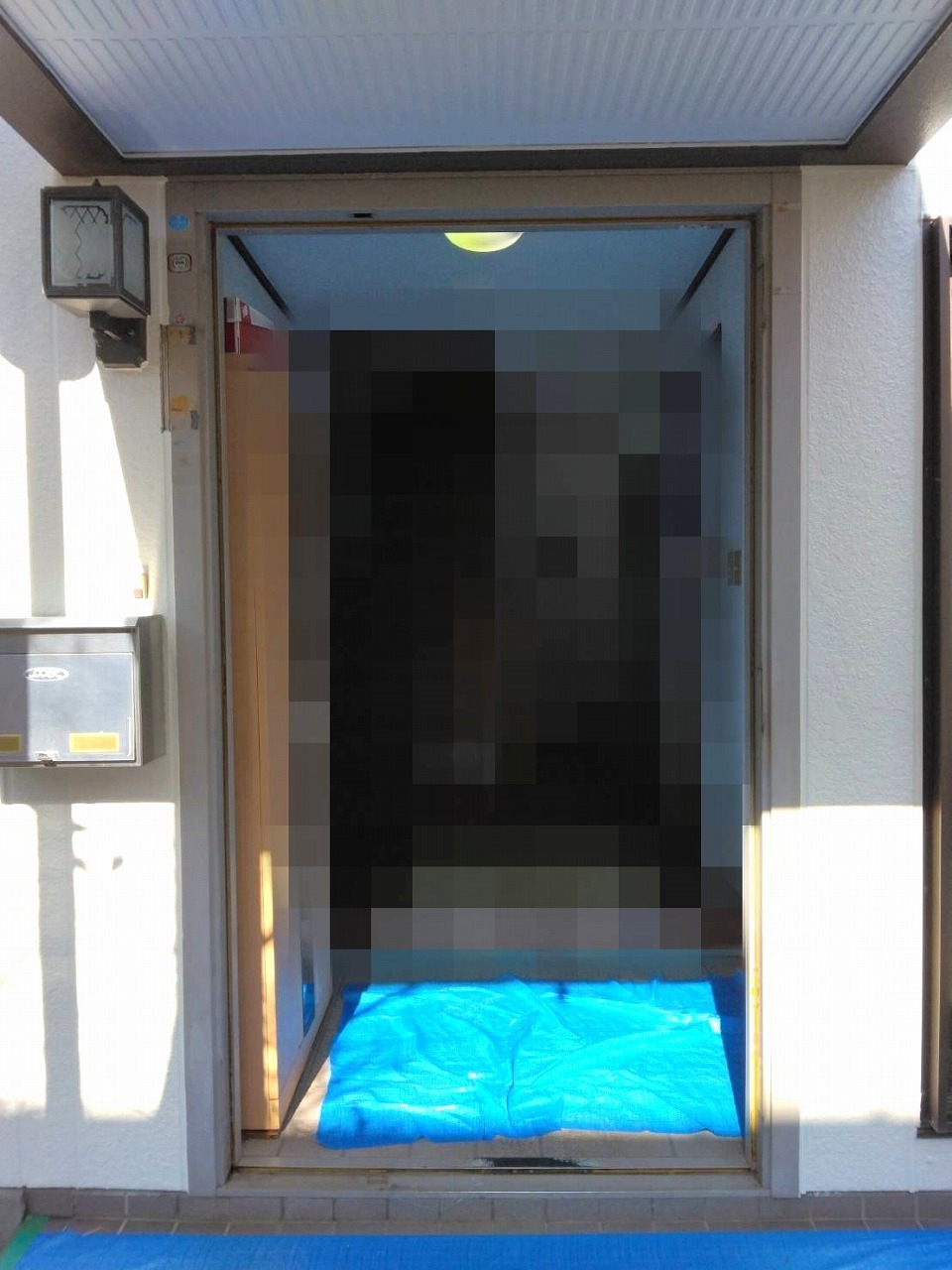 施工中。リシェントの玄関扉は1日工事で簡単にリフォームが可能です。