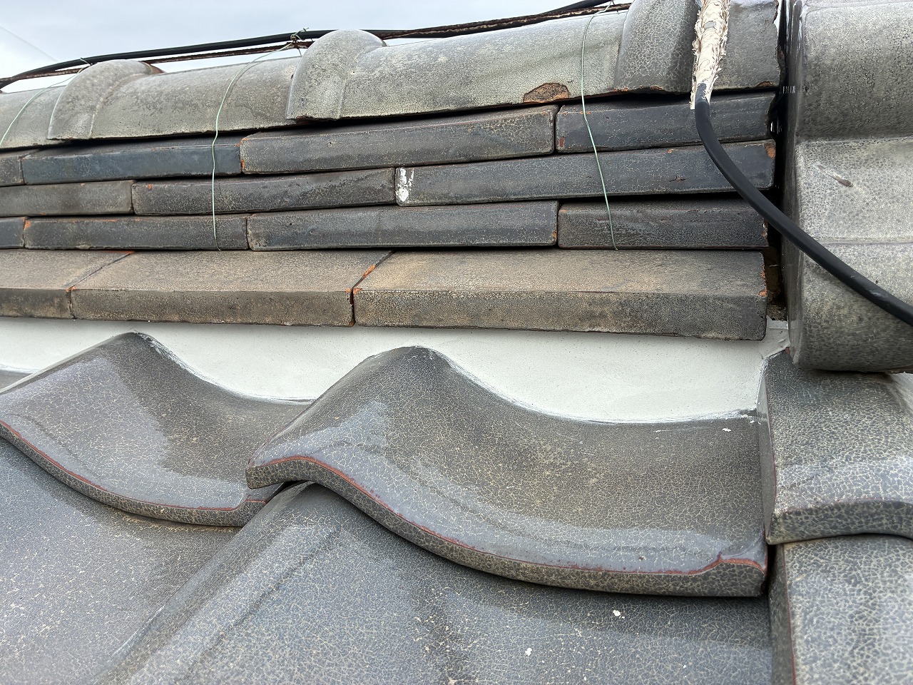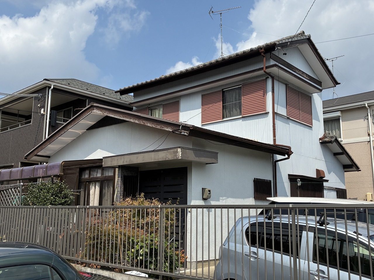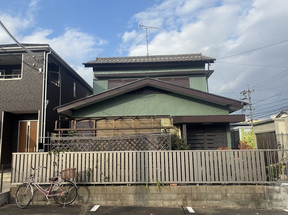 清須市にある、築40年を過ぎたお住まいです。以前よりお付き合いのあるお客様で、前回の塗装から10年以上経つことと、屋根の瓦のズレが気になっているとのことで、塗装工事と漆喰のやり替え工事をご依頼いただきました。