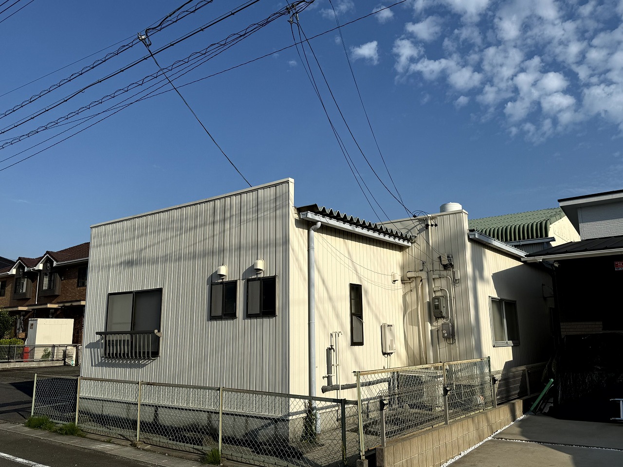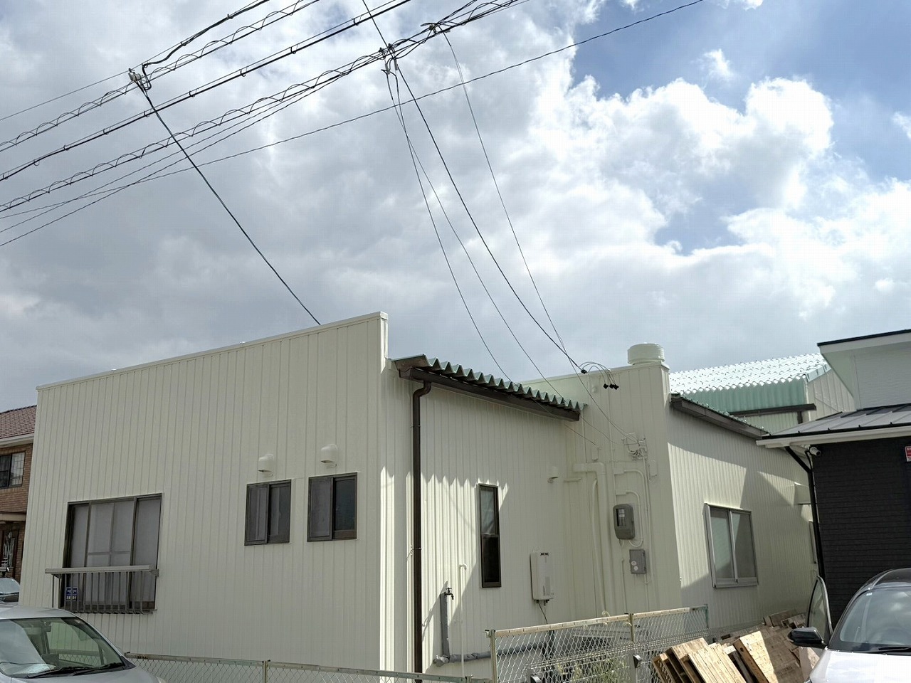 北名古屋市にある貸し倉庫の塗装工事を施工させていただきました。以前よりお付き合いのあるオーナー様からのご依頼でした。屋根塗装のみのパターンと全体塗装でのパターンでご検討の末、外壁・屋根共に至る所でサビが出ていたこともあり、全体塗装での施工となりました。