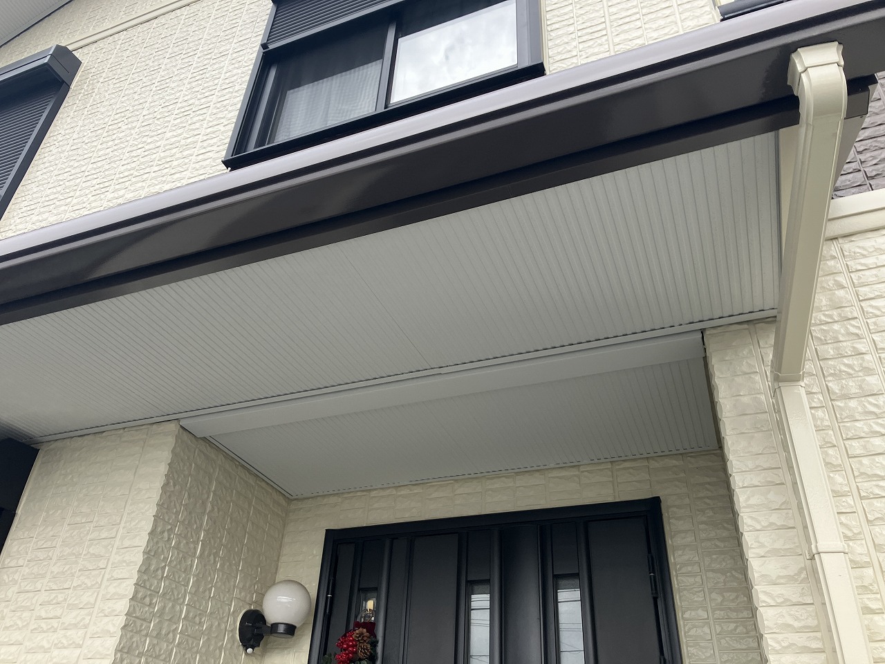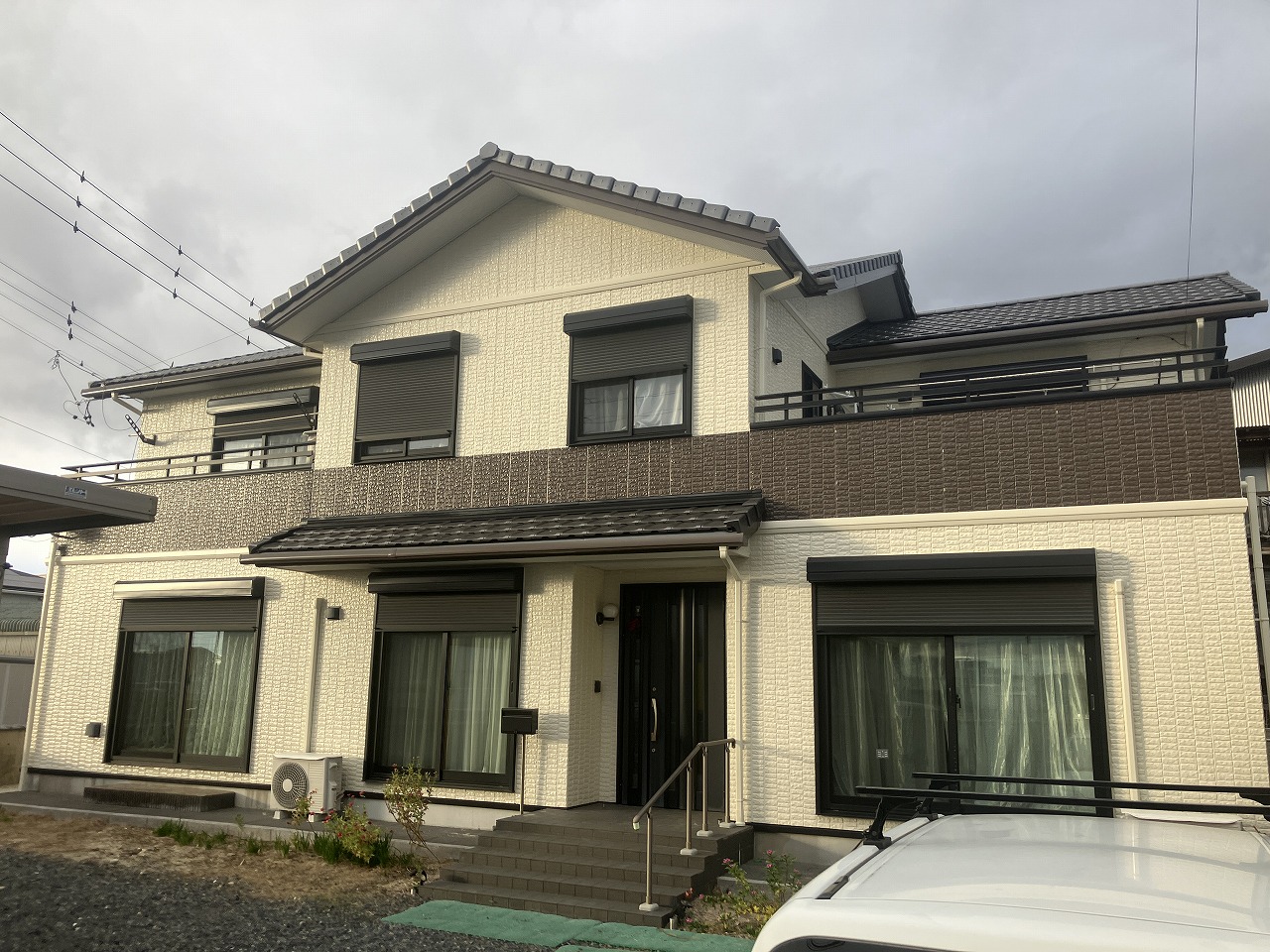 色褪せの他、クラックなども各所で見られる状態だった外壁は、温かみのあるアイボリーとブラウンのツートンカラーに塗り替えました。