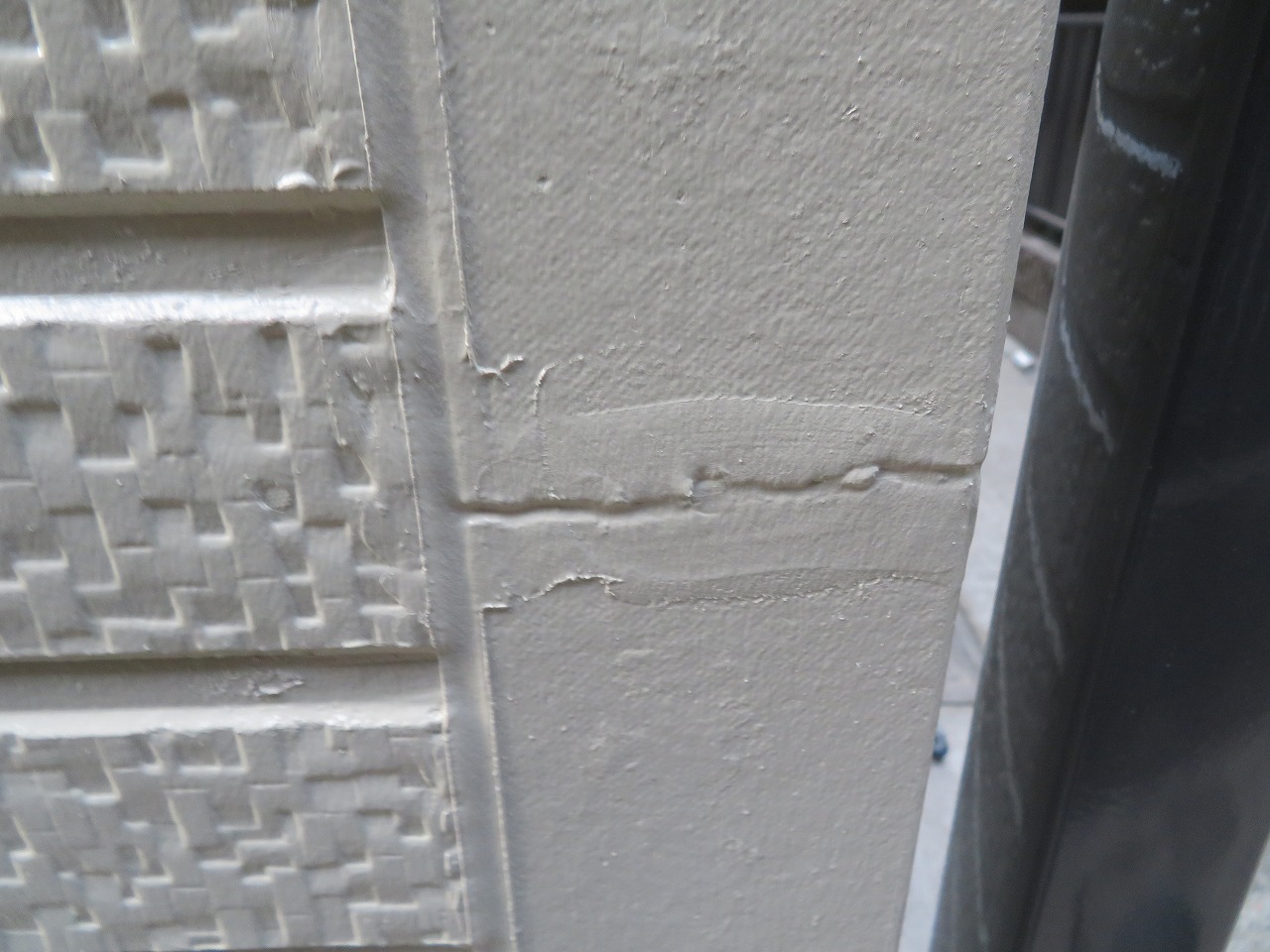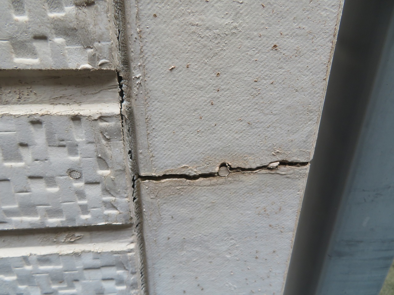 外壁は色褪せが進み、コーキングの破断やクラックも確認できました。