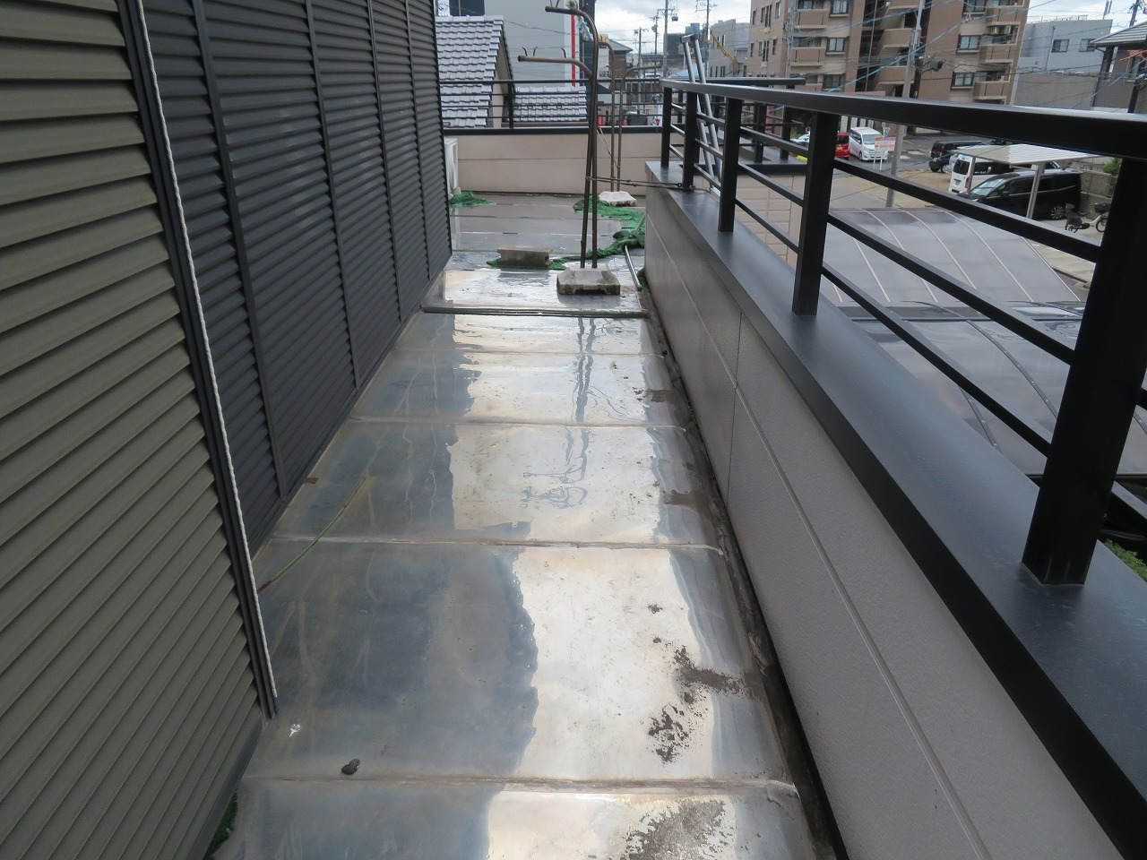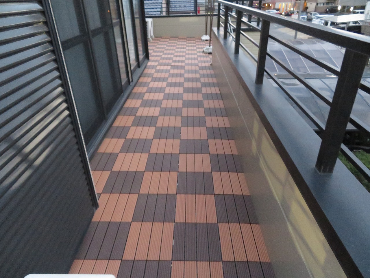 また、ベランダ床材にステンレスパネルが張られており、足元が滑りやすくて危ないというお悩みを抱えていらっしゃいました。部分補修後にジョイント式のパネルを敷き、転倒の不安なくベランダを活用いただけるようになりました。