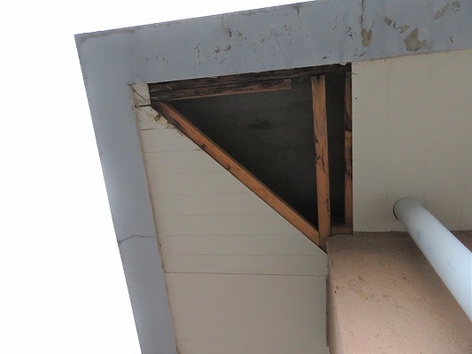 こちらのお住まいでは、防水部の劣化が目立ち、軒天のボードが落下してしまっている箇所もありました。