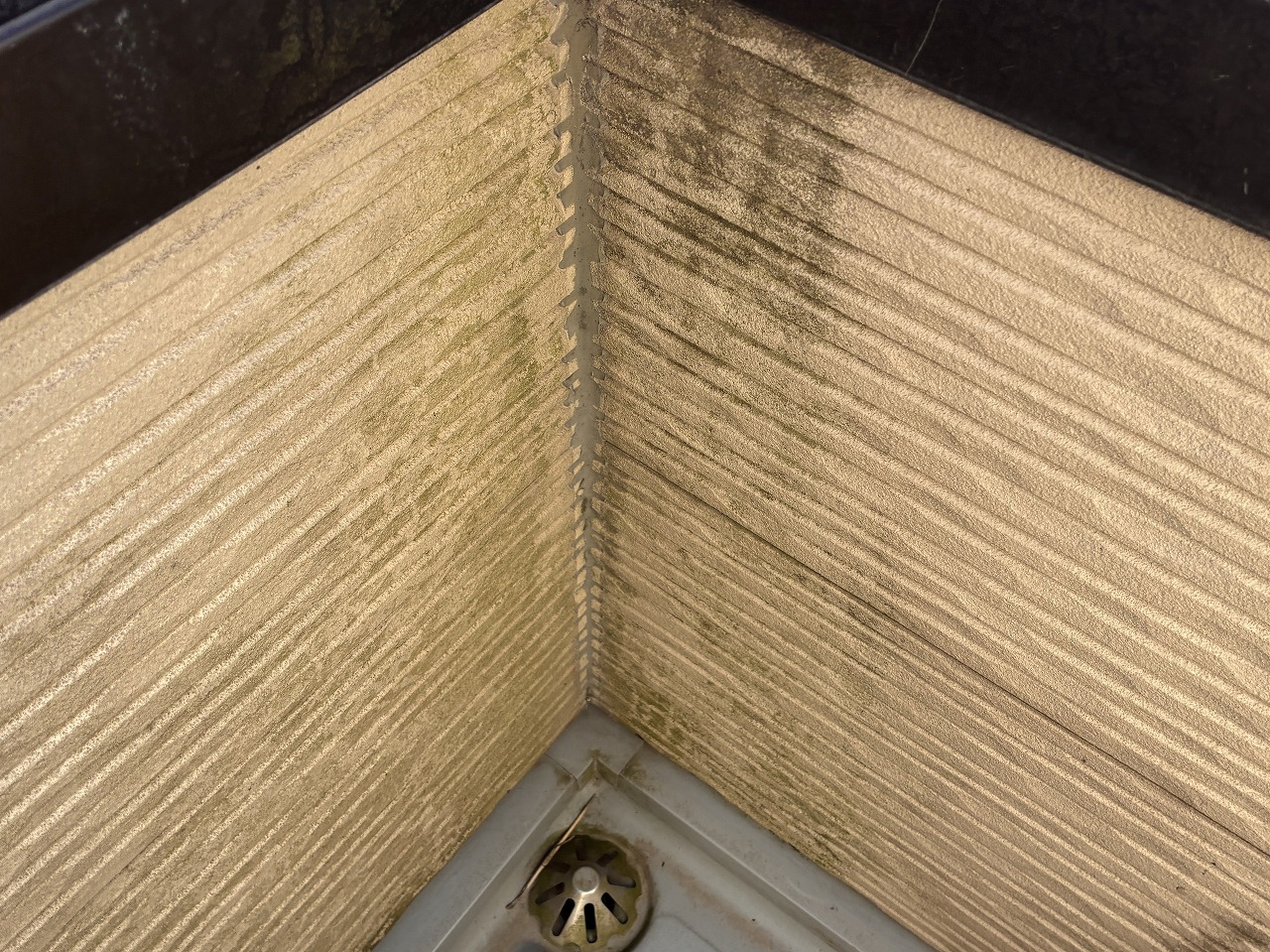 前回依頼した塗装業者は既に廃業となっているそうで、調査にお伺いするとコーキングが打ち増しで施工されていたため、全体的に目地の劣化が目立ちました。