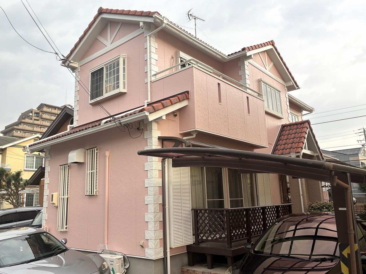 平屋のお住まいで、外壁や木部などの色褪せが気になるということでした。今までの雰囲気はそのままに、付帯部も柔らかい色合いで塗り替えました。