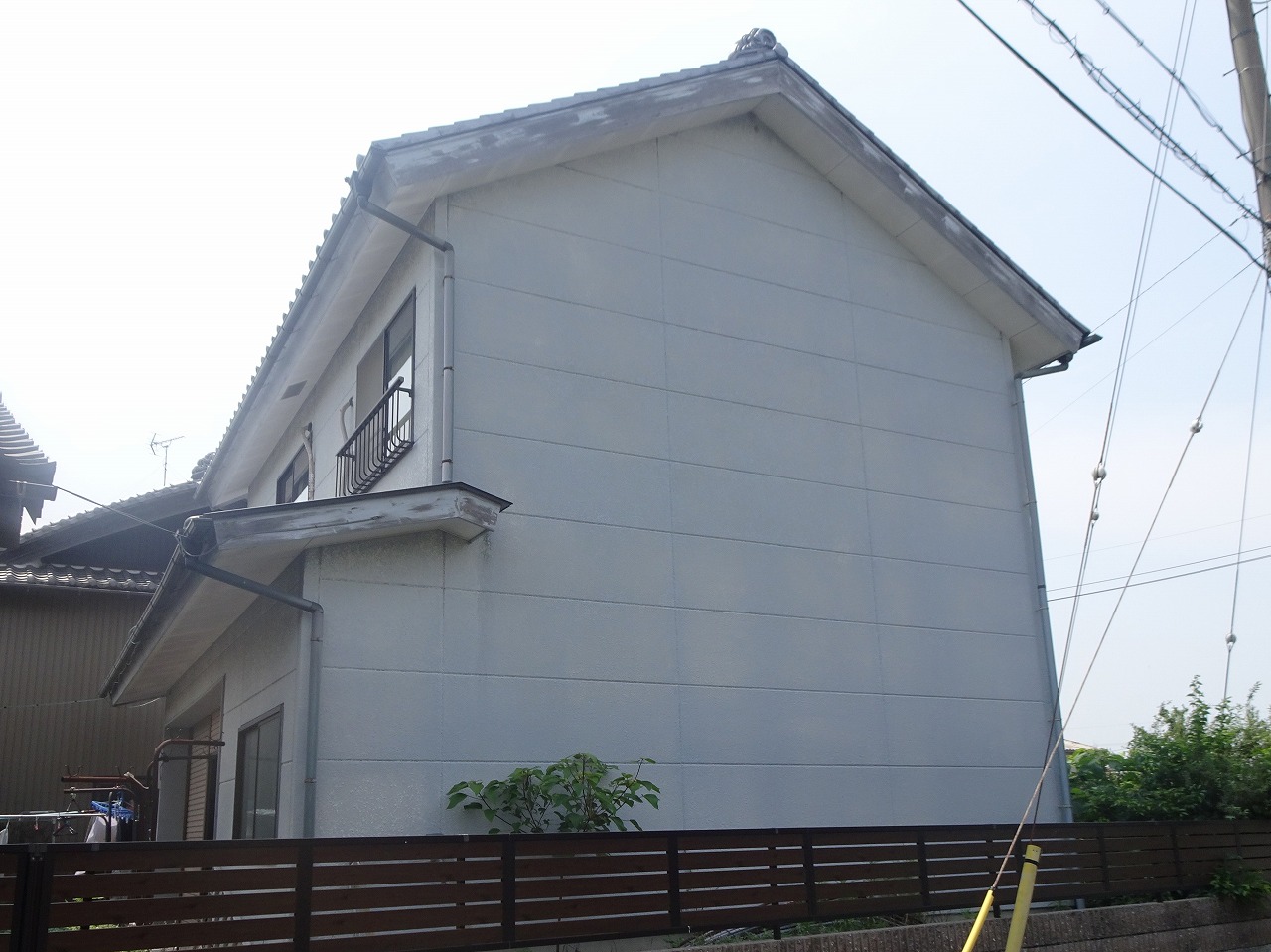 弥富市で納屋塗装のご依頼を頂きました。外壁は色褪せや汚れが見られ、コーキングの劣化も目立っていました。